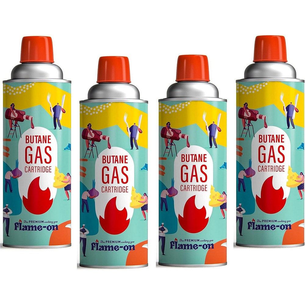 Power your portable burners, torches, and stoves with Flame On Butane Gas Pack of 4. These high-quality gas canisters provide a reliable and consistent flame, perfect for outdoor cooking, camping, and DIY tasks.