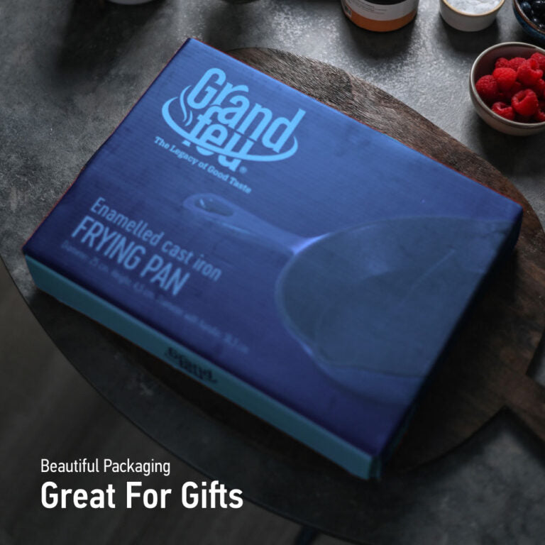 Enhance your cooking experience with the Grand Feu Cast Iron Frying Pan 15.5 cm (Blue). Compact, stylish, and versatile, this pan is perfect for searing, frying, and serving individual portions or side dishes with exceptional results. Its elegant blue enamel finish adds a modern touch to any kitchen setup.