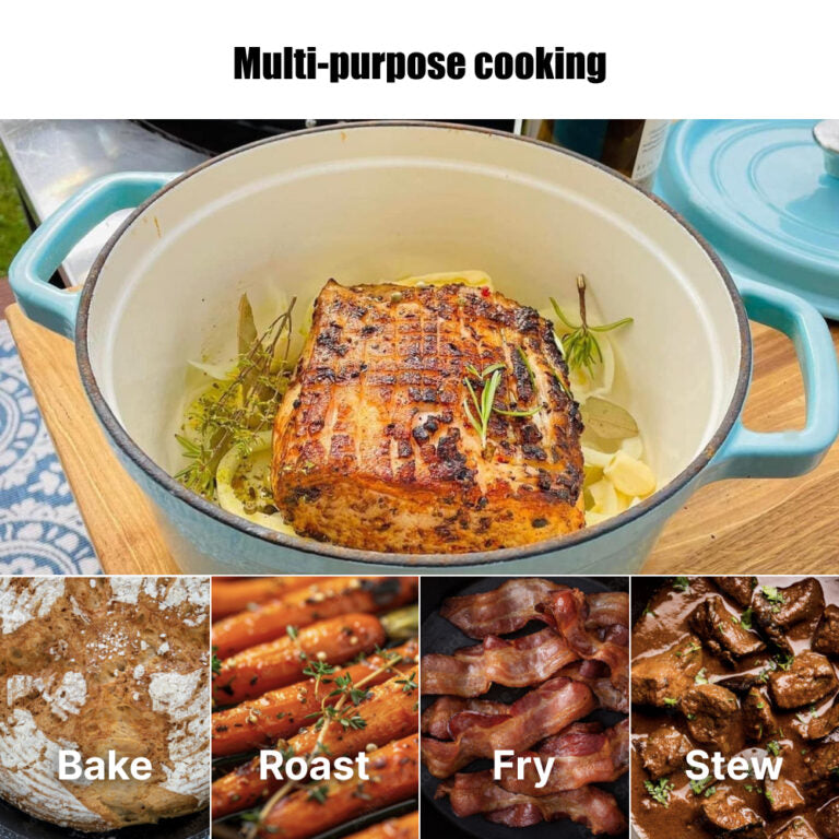 Crafted from premium cast iron, this pot provides even heat distribution and excellent heat retention. The durable enamel coating prevents sticking, protects the cast iron, and makes cleaning easy. A tight-fitting lid locks in moisture and flavor, ensuring tender and delicious dishes every time.
