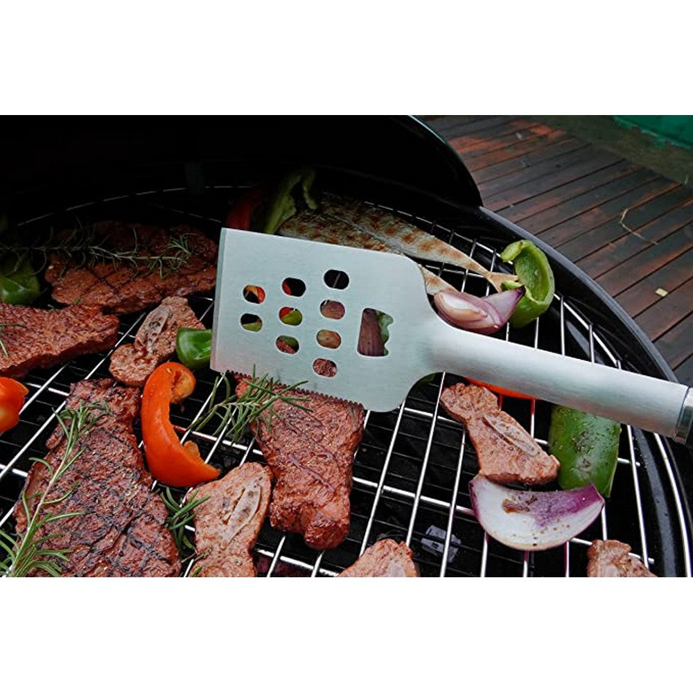 Crafted from durable, heat-resistant stainless steel, the turner is built to last and withstand high cooking temperatures. Its ergonomic handle provides a comfortable, secure grip, making grilling safer and more efficient. Lightweight yet sturdy, it’s an essential tool for both outdoor barbecues and indoor cooking.