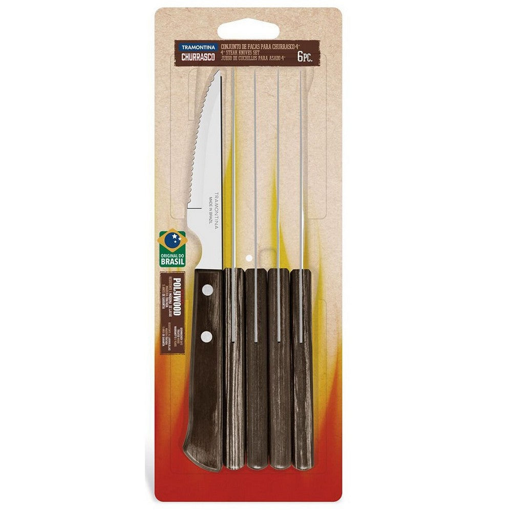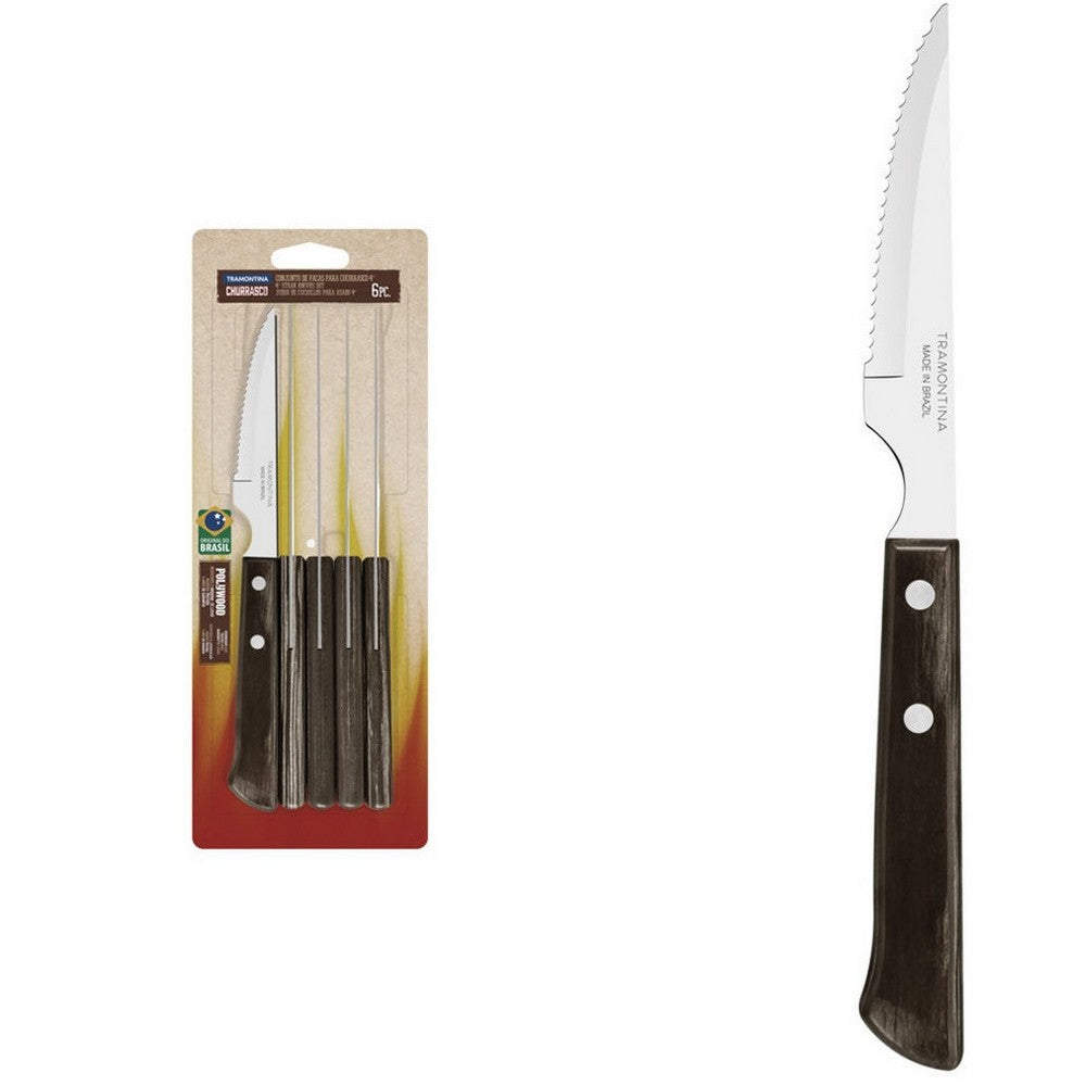 Enjoy every bite of your favorite meals with the Tramontina 6 Pcs Steak Knives Set Polywood. Designed for precision and comfort, these knives effortlessly cut through steaks, meats, and other dishes, making them perfect for everyday dining and special occasions.