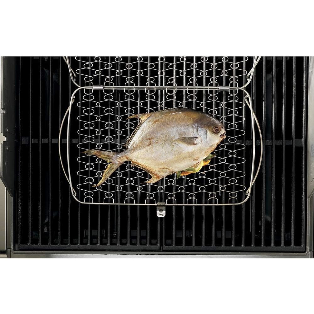 Grill delicate fish and vegetables to perfection with the Weber® Original Grilling Fish Basket, Large. Designed to prevent food from sticking or falling apart, this stainless steel basket securely holds your ingredients while allowing smoky flavor to infuse every bite. Perfect for whole fish, fillets, or even sliced vegetables.