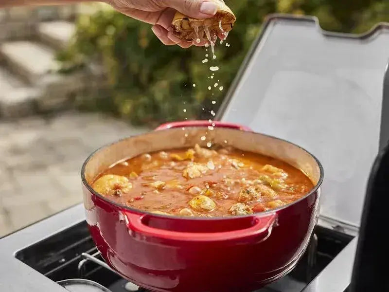 • Side burner provides extra cooking space for sauces and sides